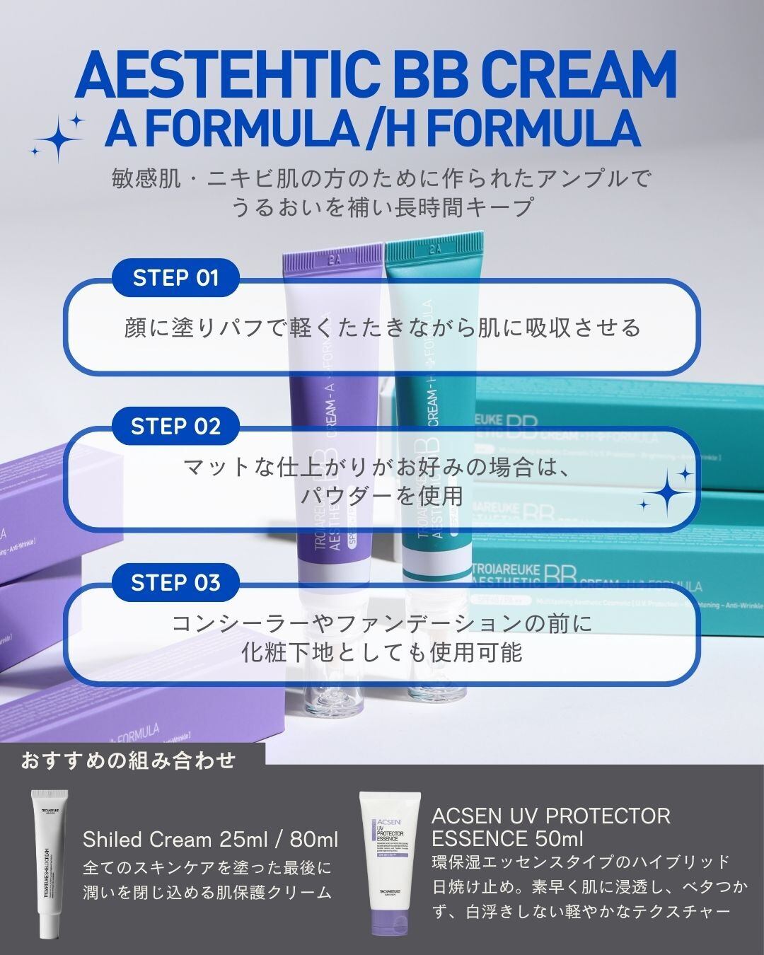 オイリーな方は、このクリームの後にパウダーを使用してください。